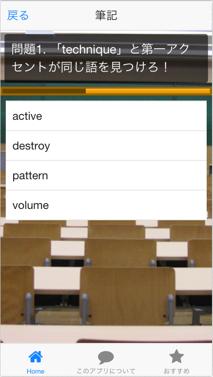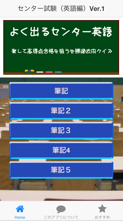 独立行政法人大学入試センターが毎年1月13日以降の最初の土曜日・日曜日に行う、日本の大学の共通入学試験である、入試センター試験(だいがくにゅうしセンターしけん)の英語でボーダーラインを突破するための学習アプリです。