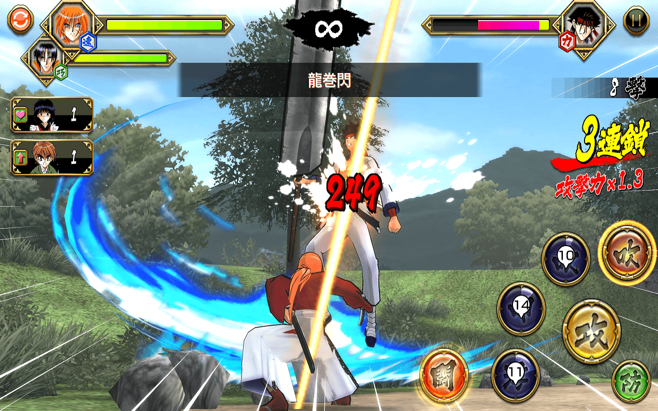 「飛天御剣流」、「二重の極み」、「小太刀二刀流」など、原作に登場した数々の技を使いこなせ!!