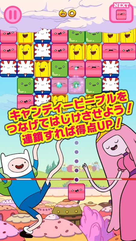 キャンディーピープルを縦横斜めにつなげてはじけさせよう!連鎖すれば得点UP!