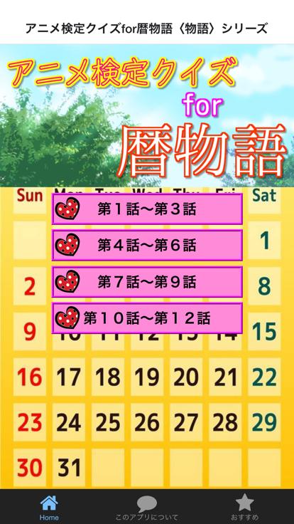 このアプリは人気アニメ「暦物語」の無料クイズアプリです。