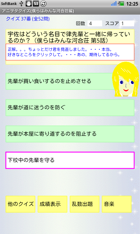第12話「近づきたくて」からクイズ4問を追加して、合計92問にしました。