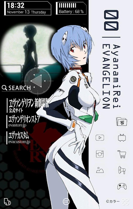 アスカ、レイ、マリが登場するかわいい壁紙やクールなアイコンで、スマホが完全エヴァモードに。