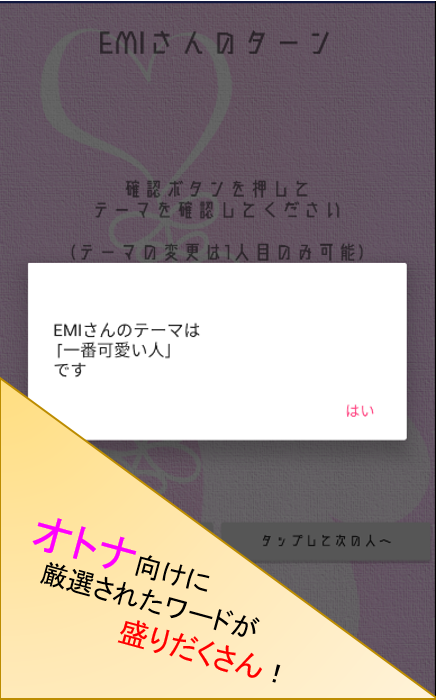 ما را توسعه بازی محبوب "کلمه گرگ ~ wordwolf ~" به برای بزرگسالان! حزب مشترک و نوشیدن، از تپش افزایش مطلق اگر بازی در یک بازی روانی حزب!