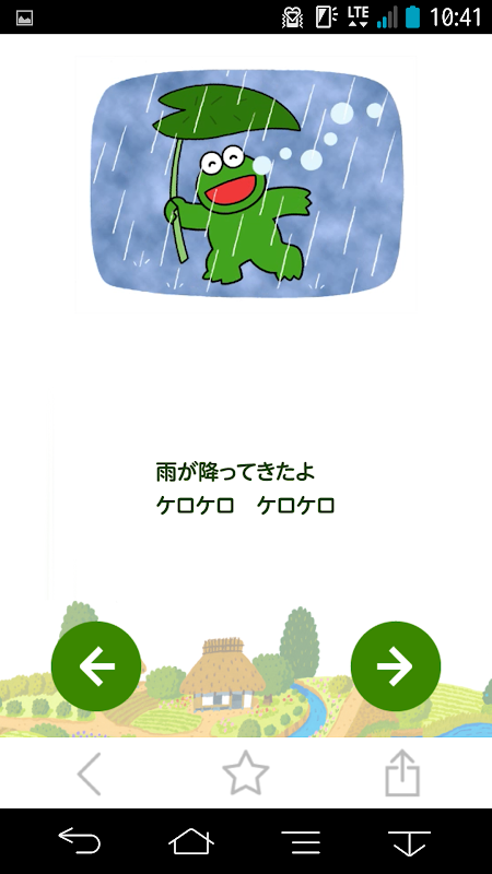 おらが村には、雨の日に田んぼでケロケロ〜♪と美しい合唱を披露してくれるカエルのケロ太や、いたずらで化けておじさんを驚かせるのが大好きなタヌキのポンゴロー、里山で木の実を集めたり遊ぶのが大好きふたごのサルのサスケとルスケなどなど、楽しい仲間がいっぱい住んでいます。
