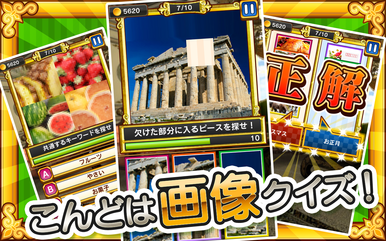 3種類の画像クイズでアタマの体操!簡単操作で問題を解き、絵画をゲットしよう!