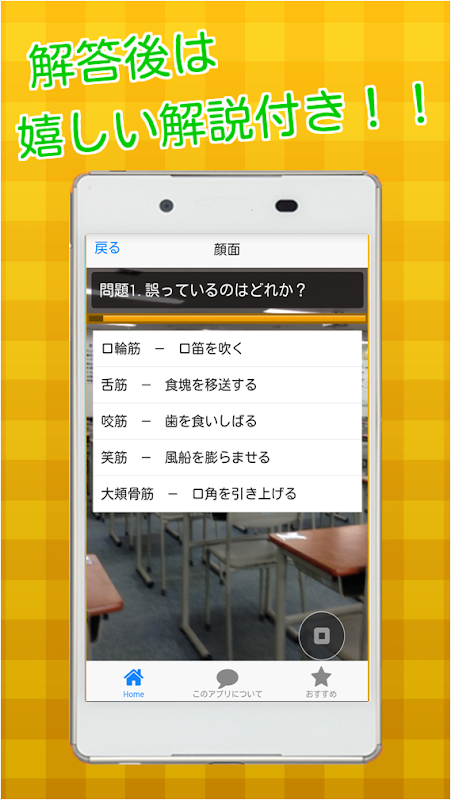 PT・OTの国家試験(共通)の過去問題より抜粋した、運動学に焦点を当てたクイズ形式アプリです。・上肢 ・姿勢 ・歩行 など 10項目に分かれております!