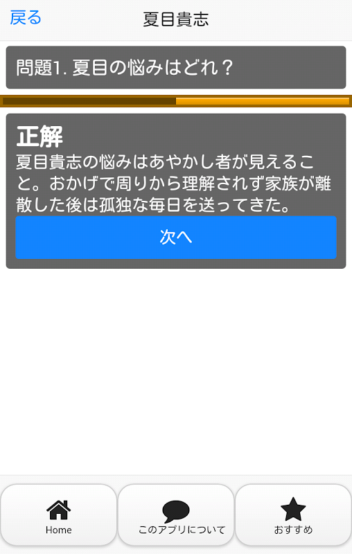 This is a quiz app built an era as healing anime "Natsume's Book of Friends". Please to challenge willingly because the difficulty is not so high.