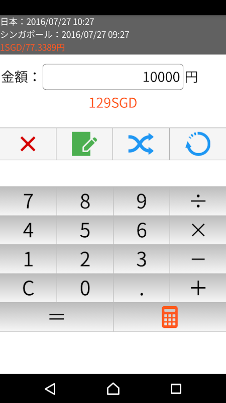 また、ボタン「SGD⇔円」を押すことにより、日本円からSGDへの変換も可能です。