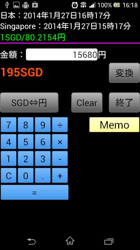 また、ボタン「SGD⇔円」を押すことにより、日本円からSGDへの変換も可能です。