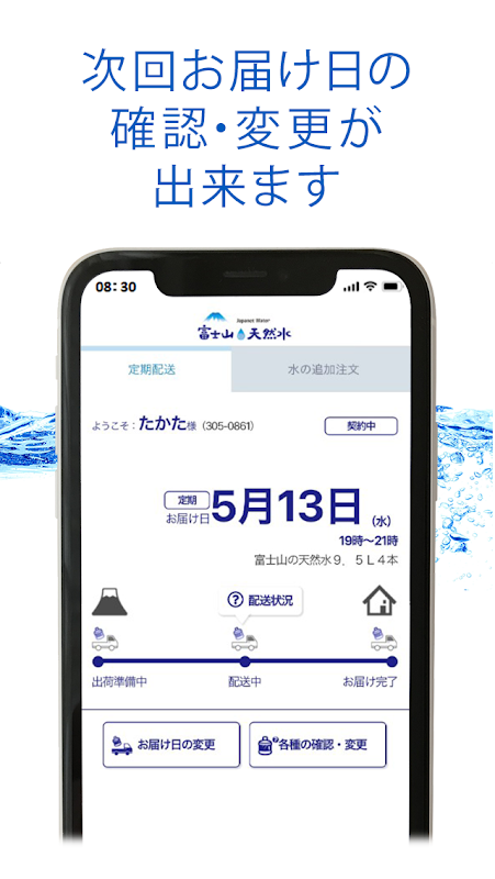 برنامه سرور آب Japannet. به راحتی می توانید تاریخ تحویل را تغییر داده و آب اضافی سفارش دهید.