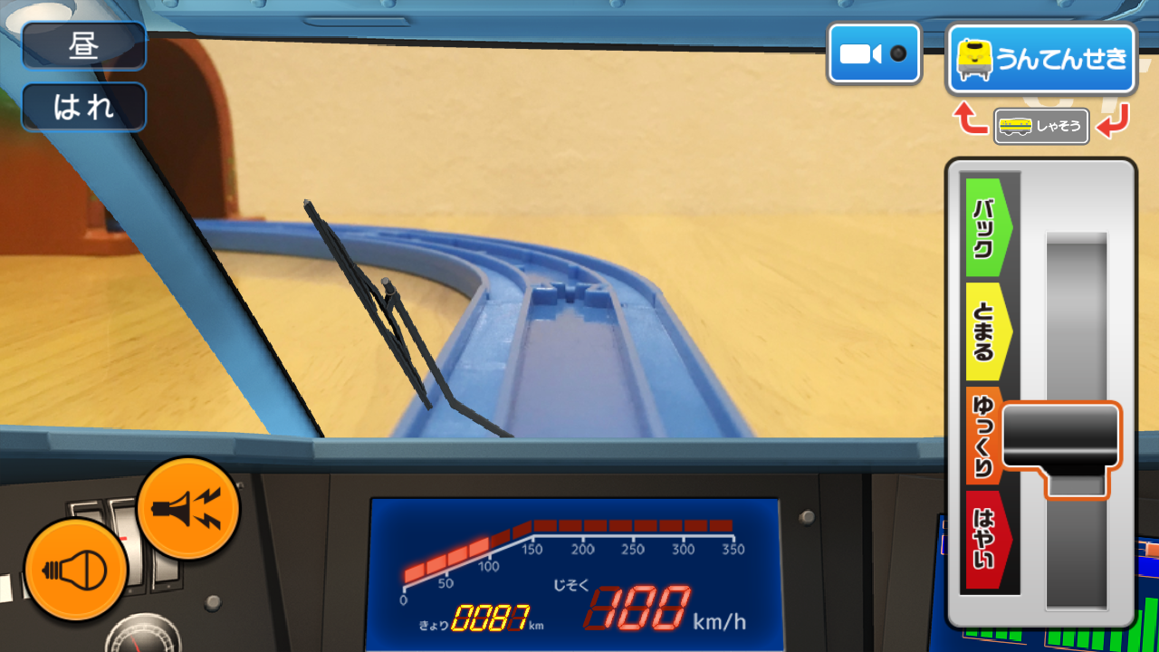 ダブルカメラドクターイエローとスマートフォンを使って遊ぶモードです。プラレールから送られてくる映像をスマートフォンで見ながら車両の操作が可能です。運転中に天候変化や時間帯の変化などのエフェクト発生も設定することが出来ます。運転画面の映像録画も可能です。