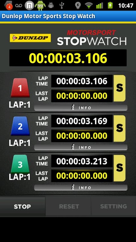 ダンロップモータースポーツが提供する「カーレースをもっと楽しもう!」をコンセプトに開発された、ストップウォッチアプリです。