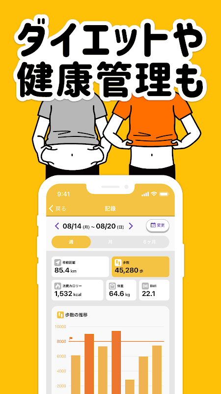- هر روز تا 1000 ین مایل کسب کنید! با شمارش تعداد قدم هایی که در حین راه رفتن یا قدم زدن برمی دارید، پول نقد بیشتری کسب کنید!