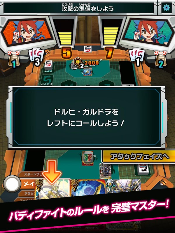 バディファイトの遊び方がわかる充実した「ティーチング機能」に加えて、一人で実際にプレイできる「ひとりで対戦」機能も搭載!