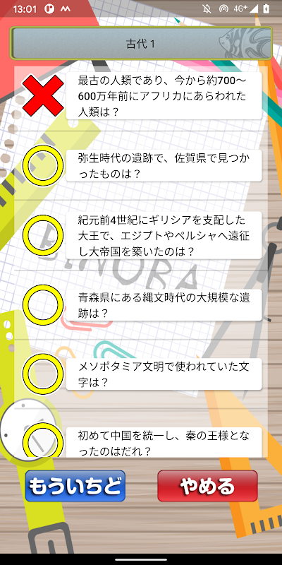 クイズ感覚で気軽に四択問題を解いたり、暗記カードのように答えを確認したりできます。
