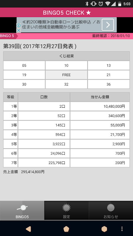 اطلاعات ビンゴ5の当選確認・速報|BINGO5 CHECK★ APK