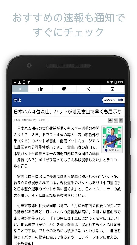 - 「ニュース」でファイターズの最新ニュース情報が知れます。