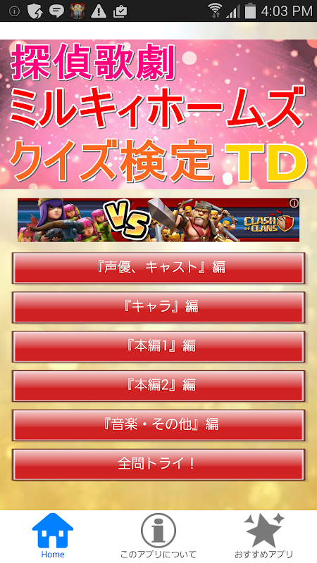 This is a test quiz application on opera Detective Opera Milky Holmes series.