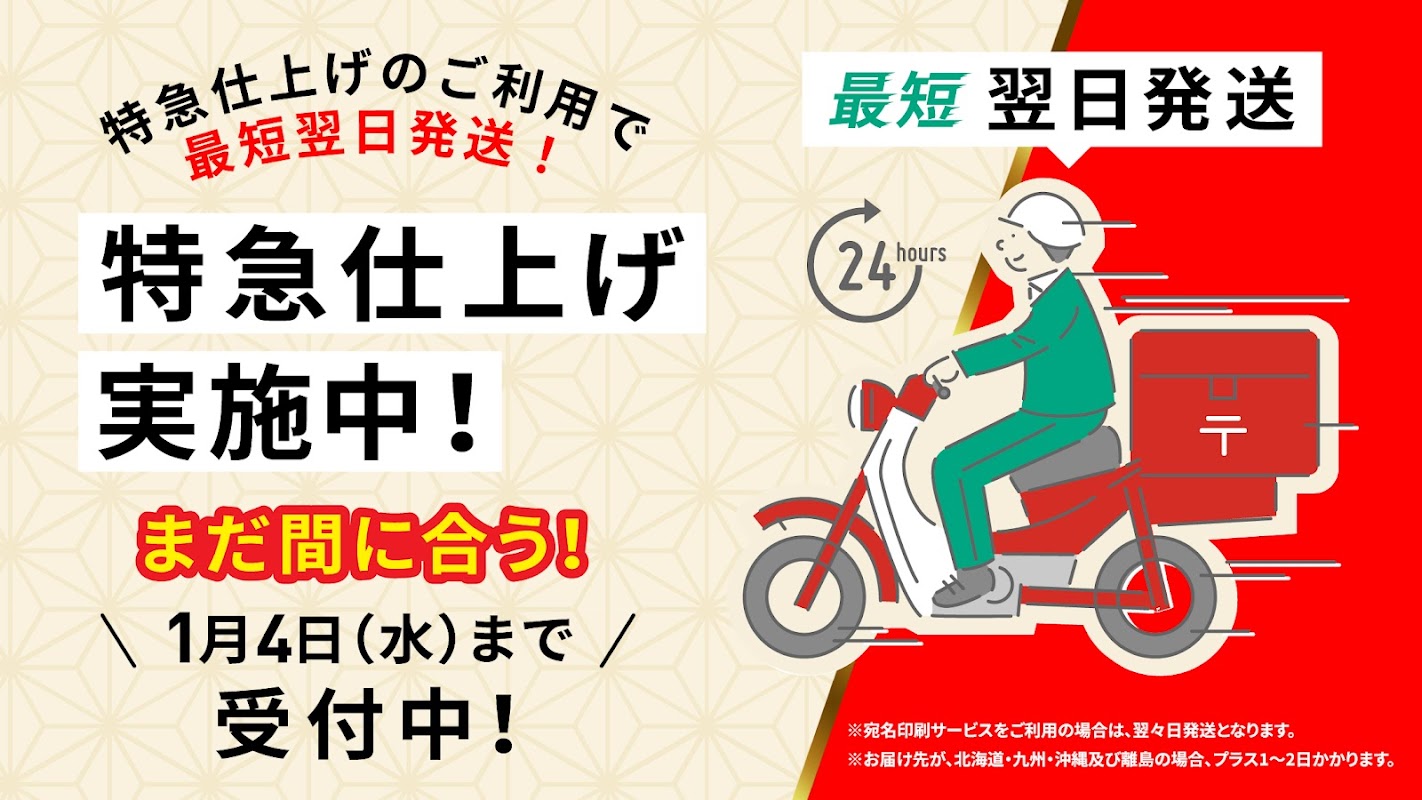 ・ چاپ آدرس / نوشتن آدرس برای کارت های سال نو را با 55 ین (با احتساب مالیات) در هر برگ می پذیریم.
