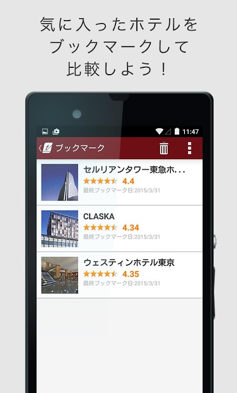 ・気に入ったホテルをブックマークして後で見る