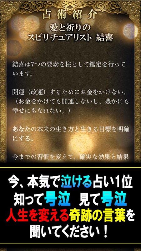 اطلاعات マジで泣ける占い 【結喜】奇跡の言葉 APK