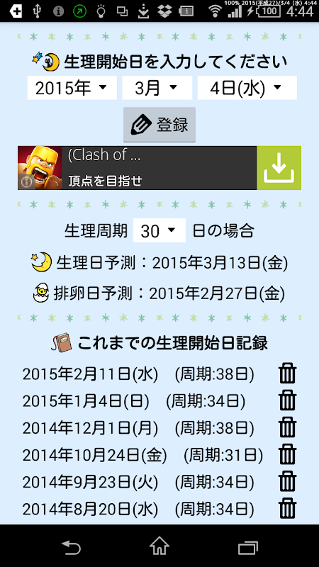 生理開始日のみを記録するだけで、面倒くさがりな人でも簡単に