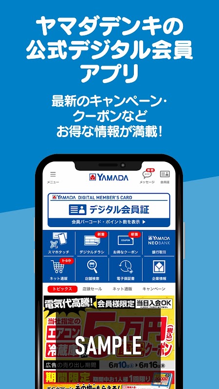 برنامه رسمی عضویت دیجیتال Yamada Denki علاوه بر کارت عضویت دیجیتال شما، مملو از کوپن ها و معاملات عالی است!
