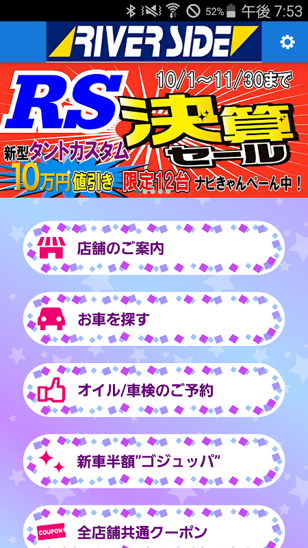 I was able original application of Kanagawa's largest used car dealer "Riverside".Deals coupons and to deliver the latest information!