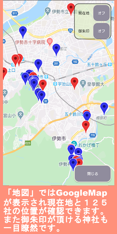 چرا به یک شرکت در شرکت های Ise Jingu 125 سفر نمی کنید؟ با استفاده از این برنامه ، می توانید مکان ، مسیرها ، اطلاعات دقیق حرم 125 زیارتگاه ایسه جینگو و اطلاعات گردشگری اطراف آنها را بررسی کنید!
