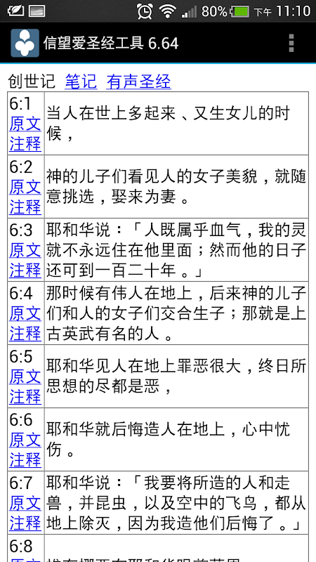 提供中文圣经版本对照、原文编号、原文字典、字汇分析、有声圣经、注释等研经工具,并可离线使用,内容常常更新