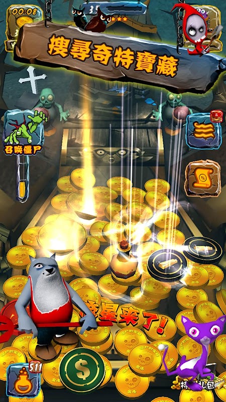 《僵屍的寶藏》讓妳在驚悚刺激的尋寶過程中,充分享受推金幣所帶來的快樂。通過向嘉年華遊戲機中投入源源不斷的金幣,妳就能將成堆的小惡魔收集起來!遊戲的樂趣不止於此,在神秘的古堡冒險的同時,妳還會不斷的解鎖僵屍王的試煉任務,獲得至高無上的榮耀!