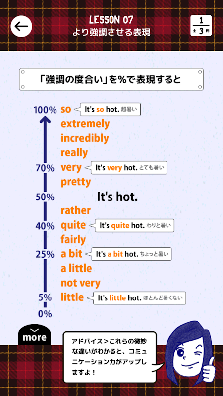 * با استفاده از دکمه «بیشتر» در یک مشکل دشوار، دستور زبان و غیره به آسانی قابل درک است.