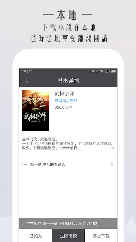 支持小說全本緩存,沒網也能盡情閱讀;