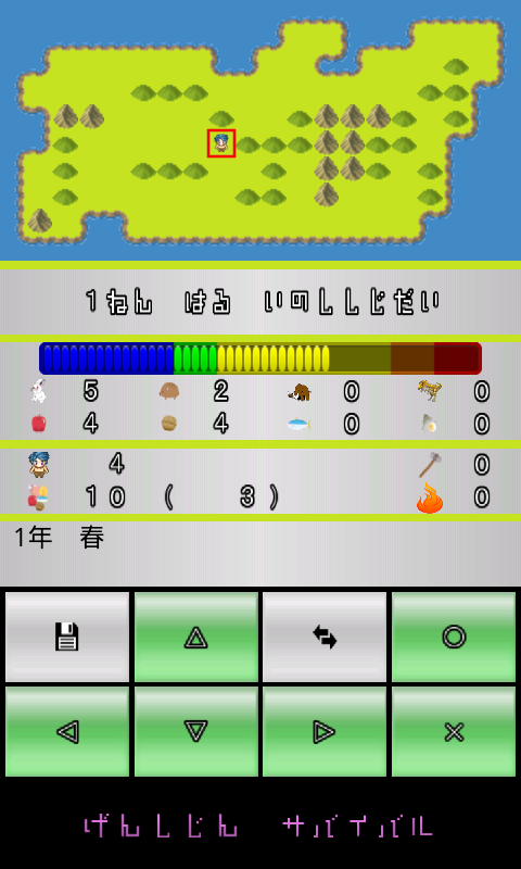 このアプリは原始時代のサバイバルシミュレーションです。