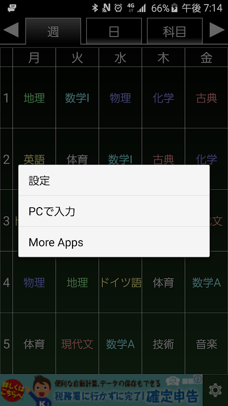 2週間制・週6日制・7限のある時間割にも対応した、時間割アプリです。