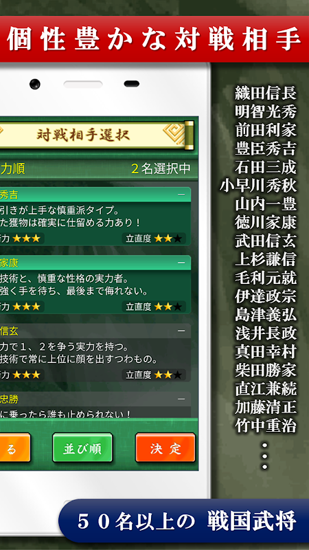 ・対戦相手は個性豊かな総勢60名の「戦国武将」