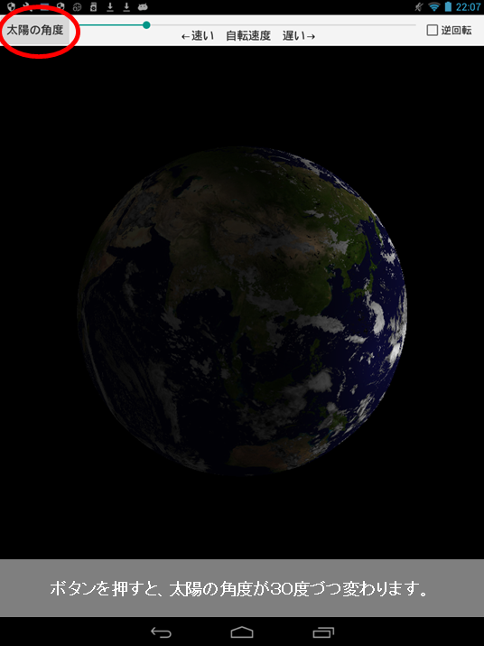 ・地球の自転速度を変えることができます。一番速いのは1秒で、一番遅いのは300秒で1回転します。