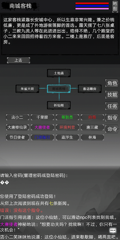 根据当年风靡网络的文字MUD游戏(xyj2000)改编而来的手机MUD网络游戏,