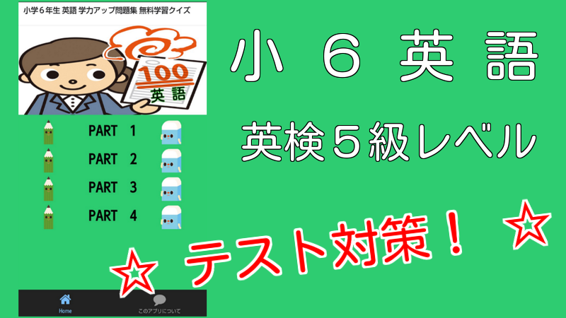 小学6年生の英語問題です。英検5級レベルでクイズ形式の無料問題集です。小学生高学年、中学生向けです。5級は第1歩です。コツコツと繰り返し勉強しましょう。