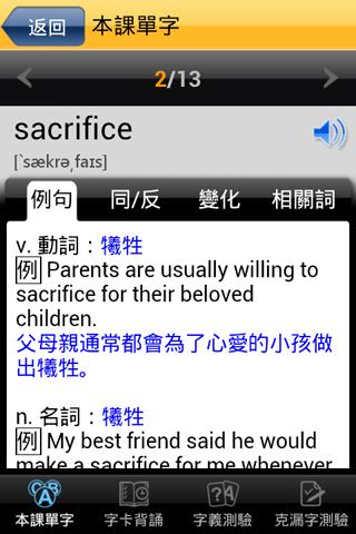 主題式單字搭配例句與多種互動式練習與測驗(字卡背誦、字義測驗、克漏字測驗),幫助您連接單字的形、音、義,有效記憶單字。