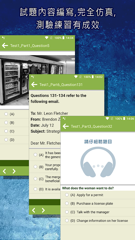 (2) سوالات آزمون شنیداری با متن کامل گفتار انگلیسی ارائه شده است که برای داوطلبان راحت است که به طور مکرر به متن ها گوش دهند و درک کنند و نکات کلیدی انگلیسی مقالات را بیاموزند.