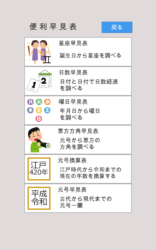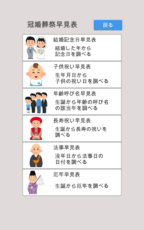 اطلاعات 年齢早見表/犬猫年齢、西暦、入学卒業、結婚、子供、長寿、恵方 APK