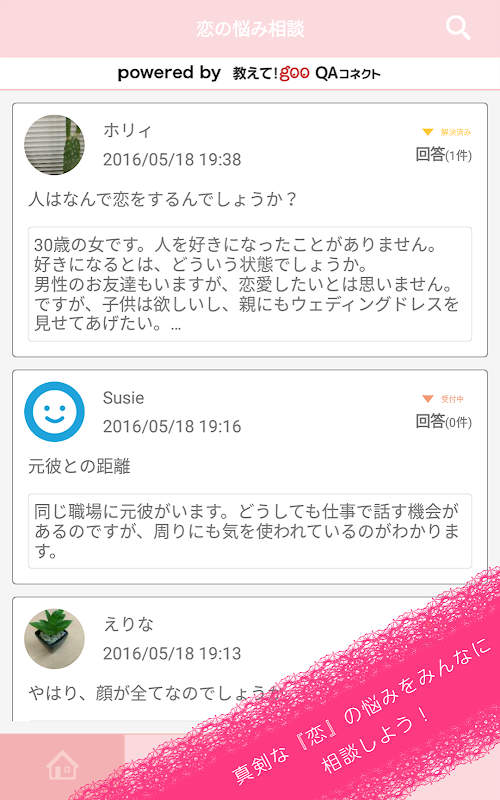 人類永遠のテーマの恋愛の悩みをみんなに相談しましょう!