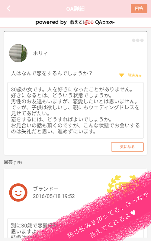 人にはいえない悩みの相談もみんなが教えてくれます!匿名だから気軽に安心して相談出来ます♪■□■□あなたの恋の悩みもこれで解決!!■□■□