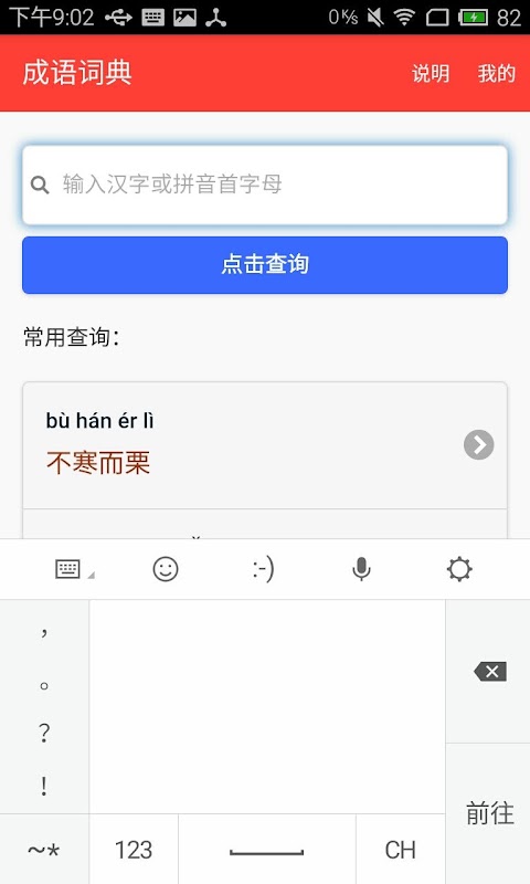 譬如要搜索 '愚公移山' 这个成语,可以在搜索框内输入拼音首字母 'ygys' ,然后点击搜索按钮。