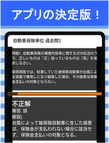 このアプリでは「自動車保険単位」分野の頻出過去問を網羅的に掲載しています。