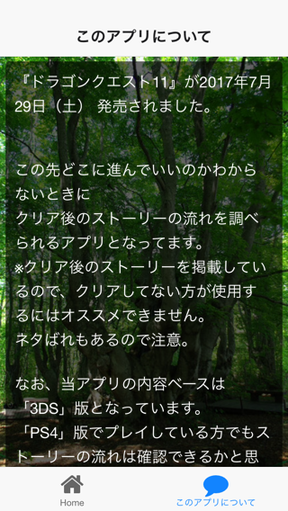 クリア後のストーリーの流れを調べられるアプリとなってます。