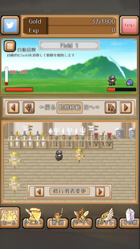画面をタップすると、勇者が修行をして経験値を獲得します。