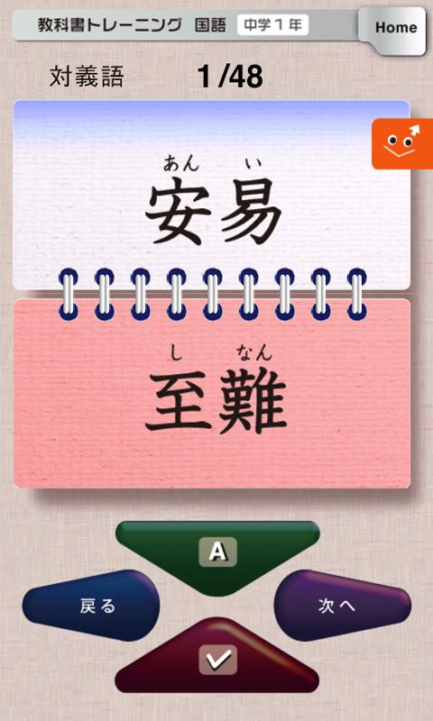 ・中学生必修の対義語暗記カードをアプリ化したものです。ジェスチャー操作対応で,指でなぞってカードをめくるように操作できます。