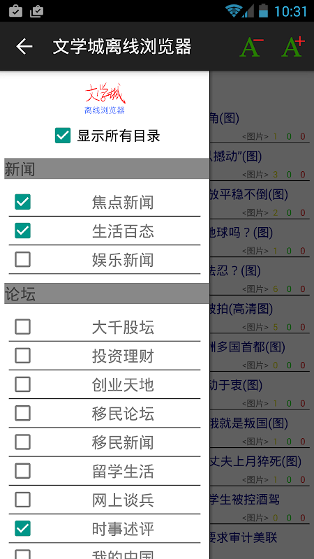 2. 这个浏览器可以在有WIFI的时候自动下载选取的新闻和版块,存储可以选择内部或者SD卡,可以选择多少时间同步一次,可以选择感兴趣的版块,可以选择下载几天之内的内容...那该多好!